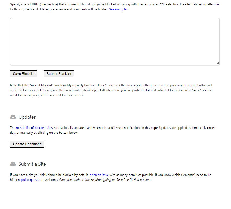 If you notice a commenting system that could be blocked by default, open an issue. Include the website where you noticed it, and I’ll try to tackle it as time permits.