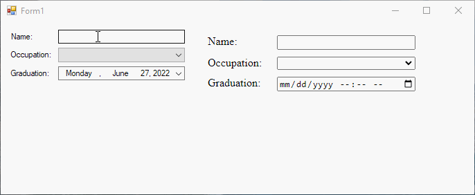 Check out the event handlers like cbxOccupation_SelectedIndexChanged