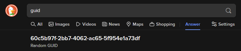 Just do a search for “guid” and above the search results you get a new one. It’s a little more convenient if you have DDG setup as your default search engine, and then you can just type “guid” in the address bar.