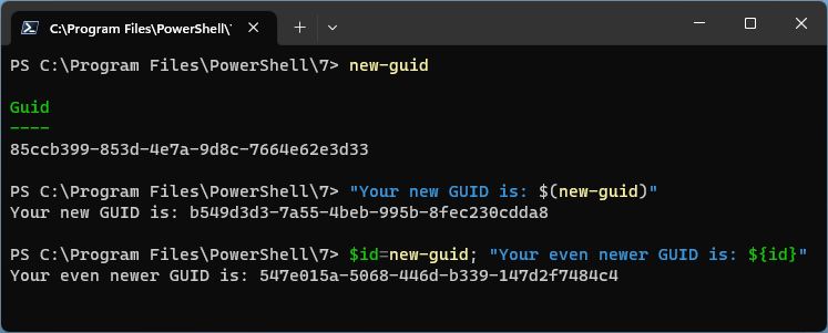 Somewhere on my long list of things to get more familiar with is PowerShell. For anyone out there who uses it regularly (maybe even leaves it open all day), there’s a New-Guid command that, well, does what you’d think.
