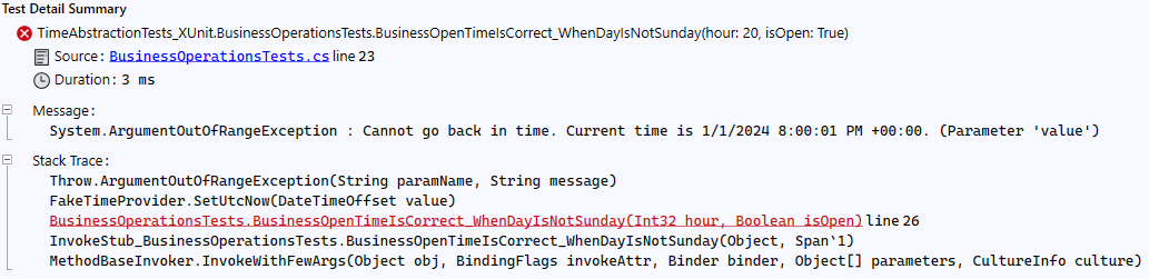 Using FakeTimeProvider with xUnit