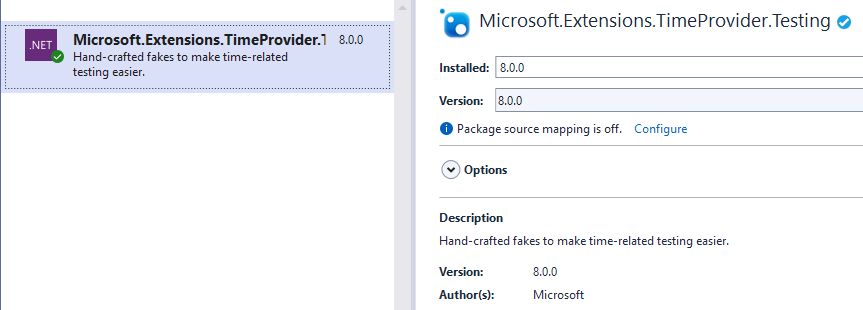 All of that’s well and good, and possibly even interesting, but how does it help us with testing? Well, .NET 8 provides us with one more new class, via NuGet package, and that’s the FakeTimeProvider