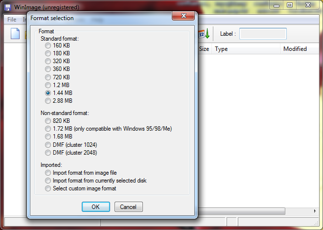 - Software capable of packaging files into a floppy disk image (may end in FLV, IMA, etc), such as WinImage(30 day free trial)