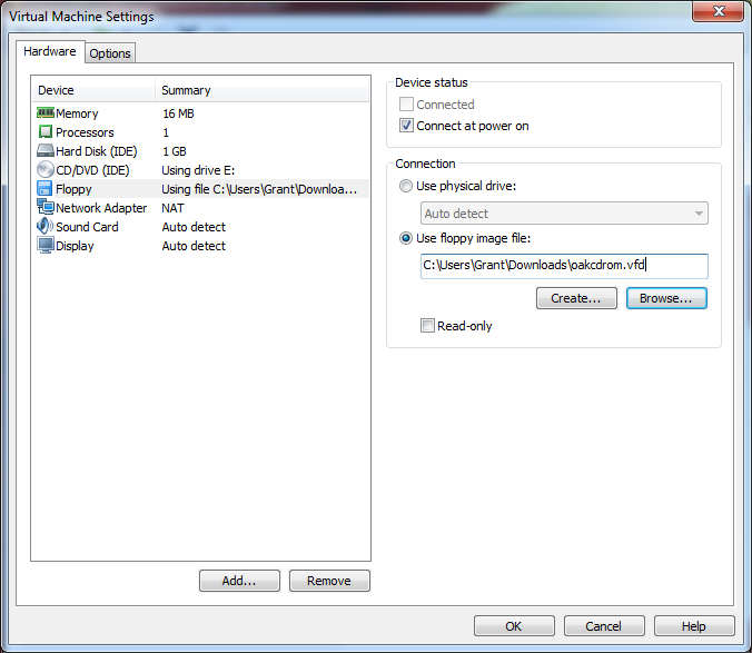 - If you’ve already got floppy disk or cd-rom images of Windows, then mount those now.