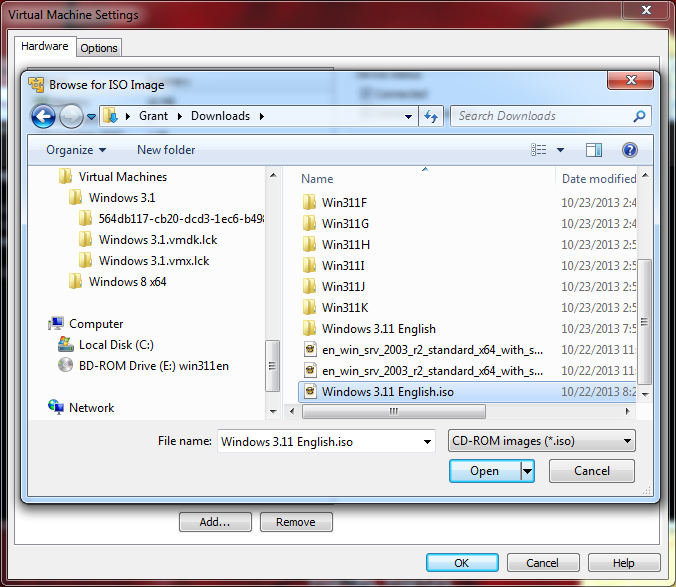 - A Windows 3.1 image. If you have an MSDN account, you can download a zip file with the installation files inside it, package them into an ISO image using Folder2Iso and mount the image.