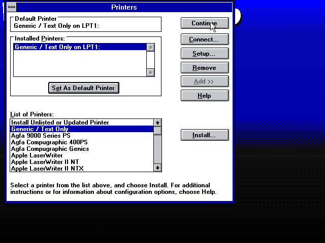 Wasn’t sure what to do with this. Considered skipping it, but ended up selecting the ‘generic’ printer. Maybe I’ll search for a driver that would allow me to print.