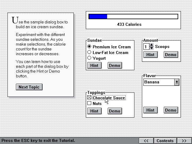 Mmm… icecream. I’m a little dubious of how they calculate the number of calories in “chocolate sauce” and “nuts”. Weight-watchers app, this is not.