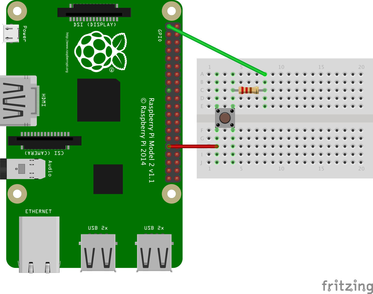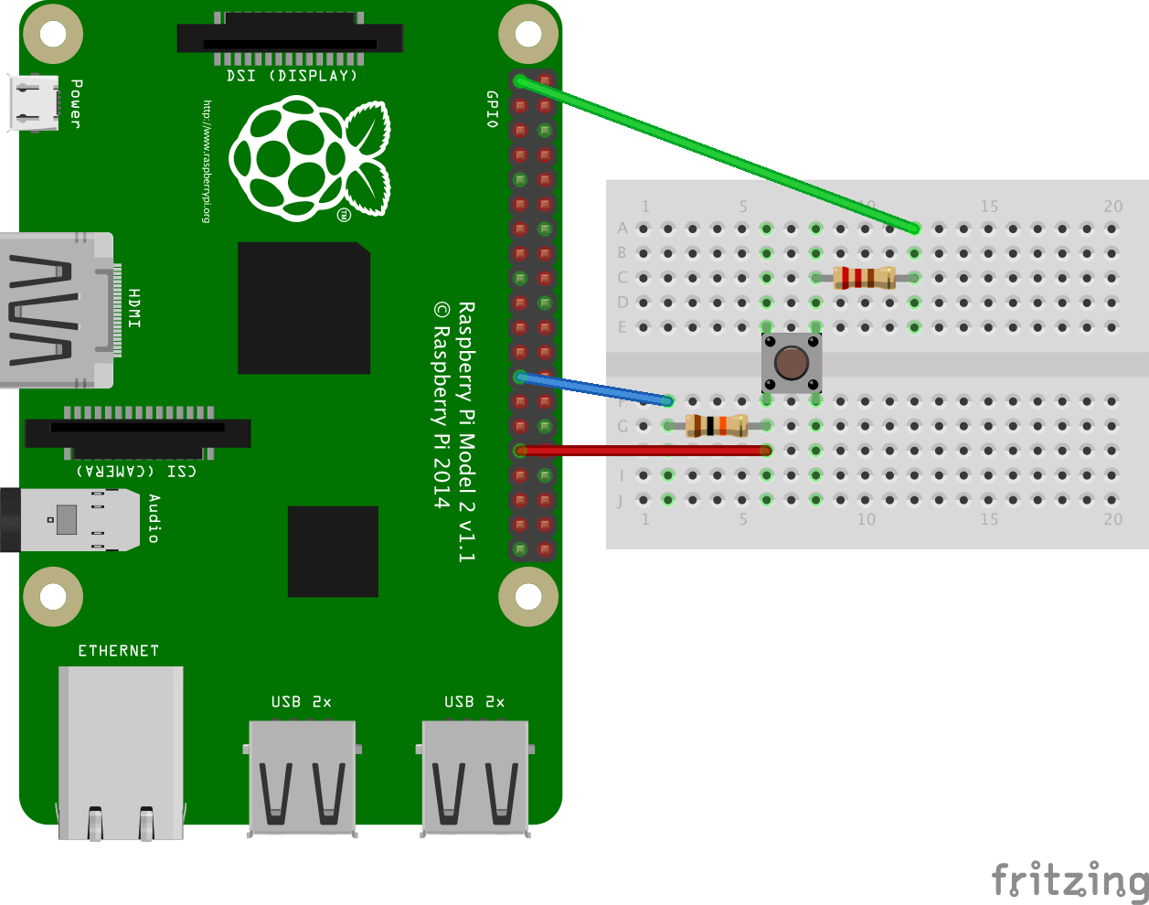 - A few resistors, wires and a button. A basic starter kit should have these, or get the CamJam EduKit - £5 (~$7)