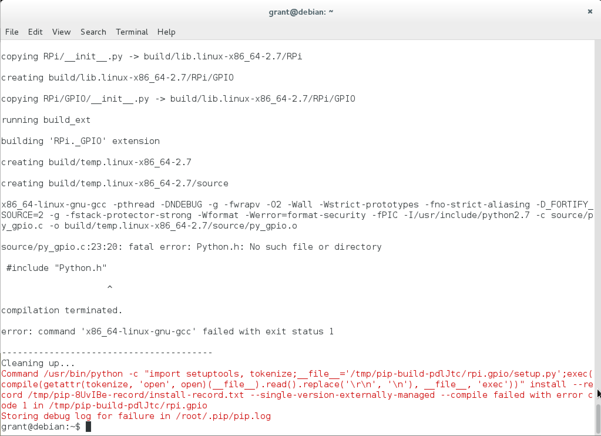 If you get the following error message, it can’t find some file. Run apt-get install python-dev