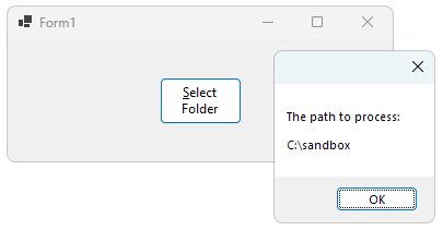 The FolderBrowserDialog control has always given us an easy way to select a single folder in an app. After confirming the user pressed OK, we just read in the SelectedPath