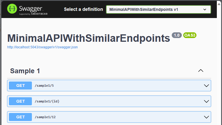 The logs indicated that an older (but similar) API endpoint seemed to be intercepting the call, and throwing a 500 error because it couldn’t handle the payload. That’s interesting, because it is possible to get yourself a bit turned around when you’ve got several similar routes, especially when one of them matches on a pattern. Take this small Minimal API for example: