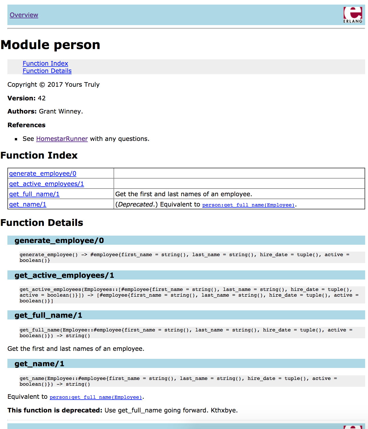 Once you’ve added comments, you can easily generate an HTML document from the erl shell with a one-liner, and the results are pretty good. Compare the page below to the comments above - is everything there?